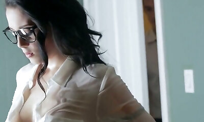 Huge-boobed blonde boss Angel Wicky pounded by an office intern