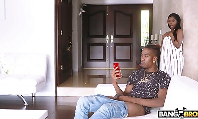 Ebony guy likes the way Kimber Woods is riding his stiff man rod in his bed